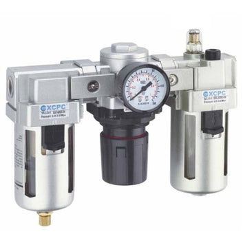 Unidad de mantenimiento, Combinacion F.R.L., Puerto: G3/8, Drenaje automático, Cubierta Metalica, Flujo: 4000 L/min, Precisión de filtrado: 25 µ, Presion Maxima de trabajo: 1MPa (145Psi), Temperatura de o